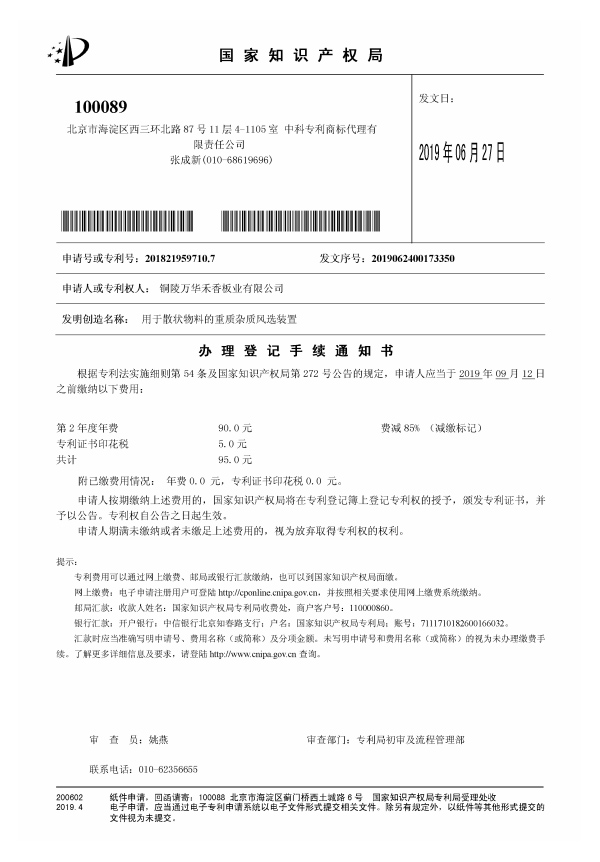 2018219597107用(yòng)于散狀物(wù)料的重質(zhì)雜質(zhì)風選裝(zhuāng)置(實用(yòng)專利)